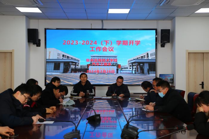 祥龙昂首,新岁序开。为切实做好新学期学校开学准备工作,确保各项工作稳步有序地开展, 2月26日上午,宿州应用技术学校分系部召开开学工作会议。学校党委书记陈计葱,副校长高方忠、苏世吉、王凯,党委副书记高飞分别到各系部主持会议。