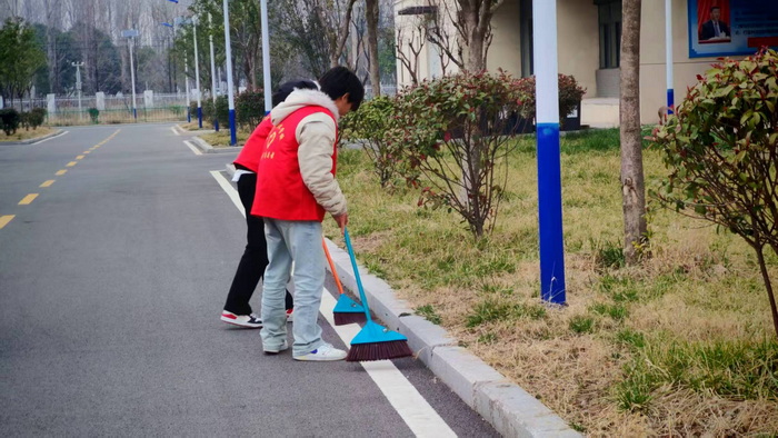 观影活动结束后,组织学生志愿者开展校园环境卫生清扫志愿服务活动。志愿者们积极行动、分工协作,对校园公共区域、绿化带、道路等进行全面清理打扫,用实际行动美化校园环境、践行雷锋精神,充分展现了宿州应用技术学校学子昂扬向上、乐于奉献的精神风貌。